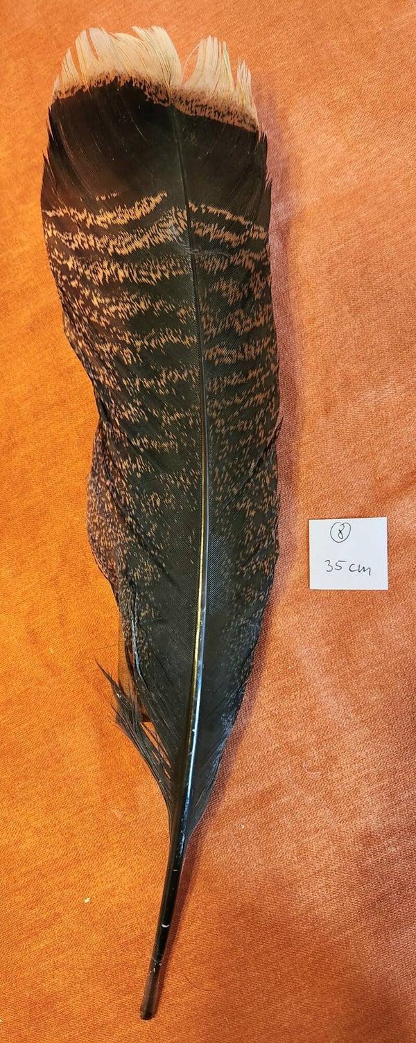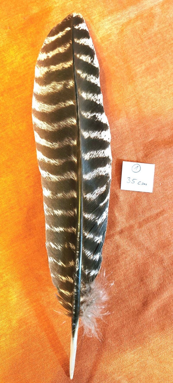 Sehr große Putenfedern in verschiedenen Farben und Größen. Wunderschön für Deko-Ideen, als Haarschmuck oder auch um Schreibfedern herzustellen. Die Federn sind nur mit Hitze behandelt und sind ungefärbt.